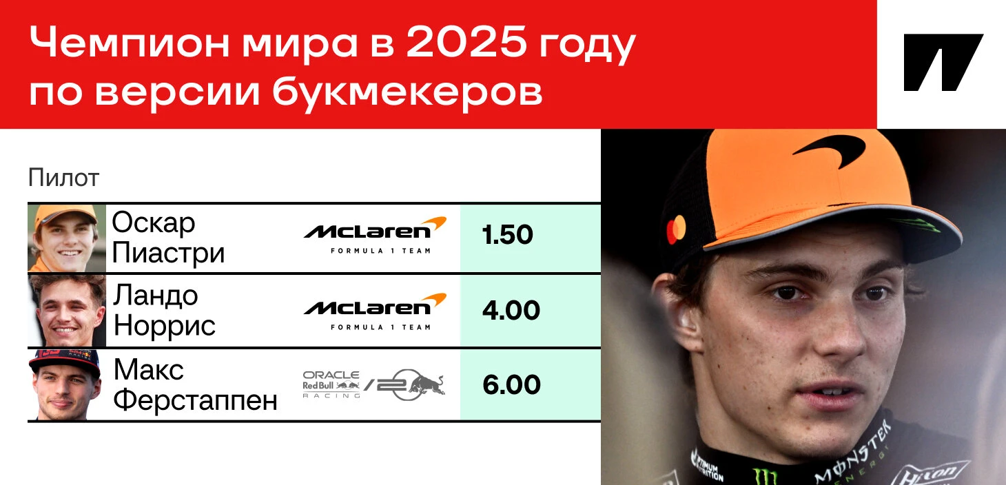 Теперь есть сомнения даже во второй позиции. Макса Ферстаппена еще не вычеркивают из тройки претендентов. При этом шансы на титул у Пиастри сильно не взлетели.