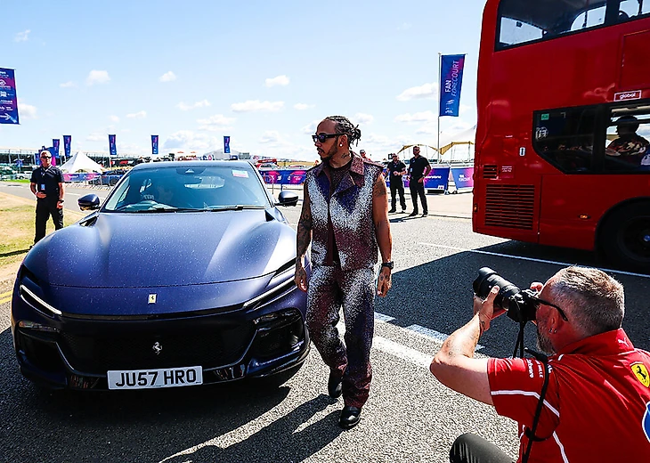 Прибыл в паддок Льюис, как полагается новой звезде «Феррари», – на первом внедорожнике марки Purosangue.