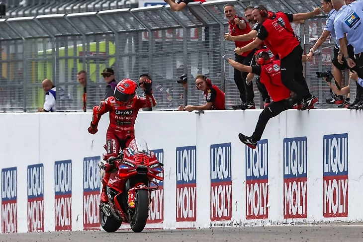 Текущая форма 32-летнего заводского гонщика «Дукати» просто невероятна: четыре победы в Гран-при и четыре победы в спринте за последние четыре этапа (уже по пять побед после этапа в Чехии). Это позволяет ему опережать своего брата Алекса на 83 очка в середине чемпионата, и у него на 75% больше очков, чем у его напарника по команде Пекко Баньяи. В этом году он лидировал 222 круга, что на 154 круга больше, чем следующий гонщик, Алекс. И воскресная победа в его 200-м старте в премьер-классе.