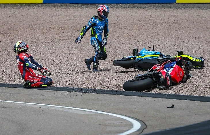 Маркес позже объяснил, что он был безупречен, потому что ехал далеко в пределах своего лимита. Того же нельзя было сказать о семи гонщиках, которые превысили свой предел, напрасно пытаясь его догнать: Ди Джанантонио, Беццекки, Педро Акоста, Йохан Зарко, Ай Огура, Мигель Оливейра и Лоренцо Савадори (который упал дважды). Хоан Мир также оказался на земле, после того как его сбил падающий Огура. К счастью, никто не пострадал.