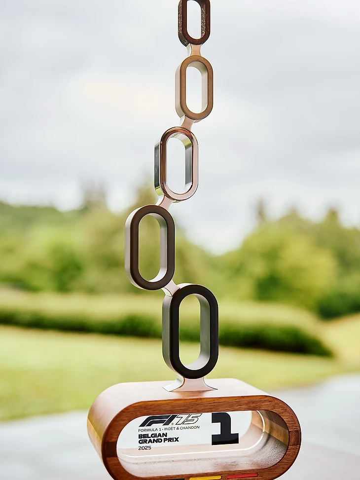 Проектирование заняло какое-то время, а внимание к деталям действительно поражает. Это не пустые слова, что награда за попадание на подиум Гран-при Бельгии 2025 года полностью повторяет легендарные «О Руж – Радийон» – связку 3, 4 и 5 поворотов.