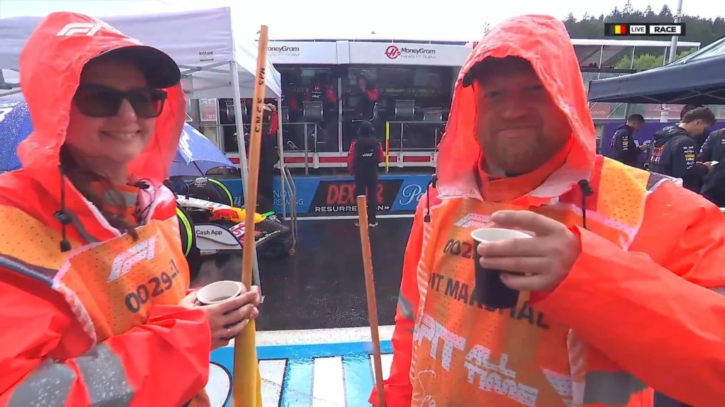 Оказалось, это Анастасия Ивановская и Павел Гусев – маршалы из России, объехавшие уже 30 этапов «Формулы-1», «24 часа Ле-Мана» и даже гонку «Формулы Е» в Южной Африке. Момент с их чаепитием неспроста попал в трансляцию – за ней крылась история, которую ребята и рассказали у себя в телеграм-канале.