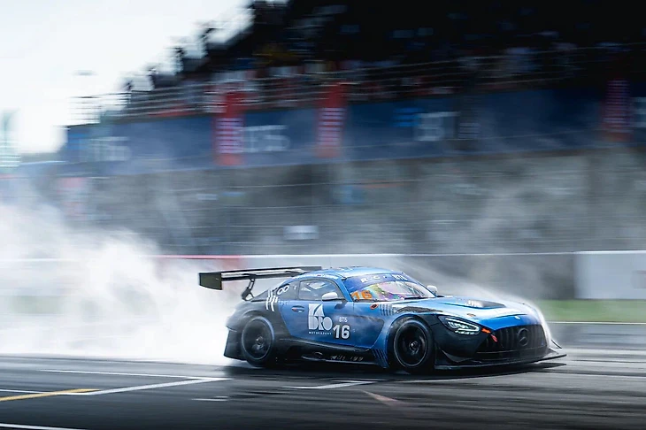 Победители первой гонки сезона – экипаж Time4Race на еще одном «Мерседесе» GT3 в ярко-оранжевой ливрее – к сожалению, были вынуждены сняться с соревнований из-за критической поломки еще до старта.