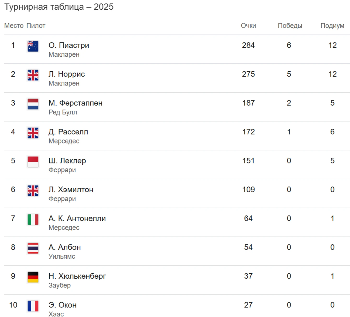 Победа Норриса над Пиастри была зафиксирована с минимальным отрывом в 0,698 секунды, что стало самым плотным финишем в сезоне-2025.