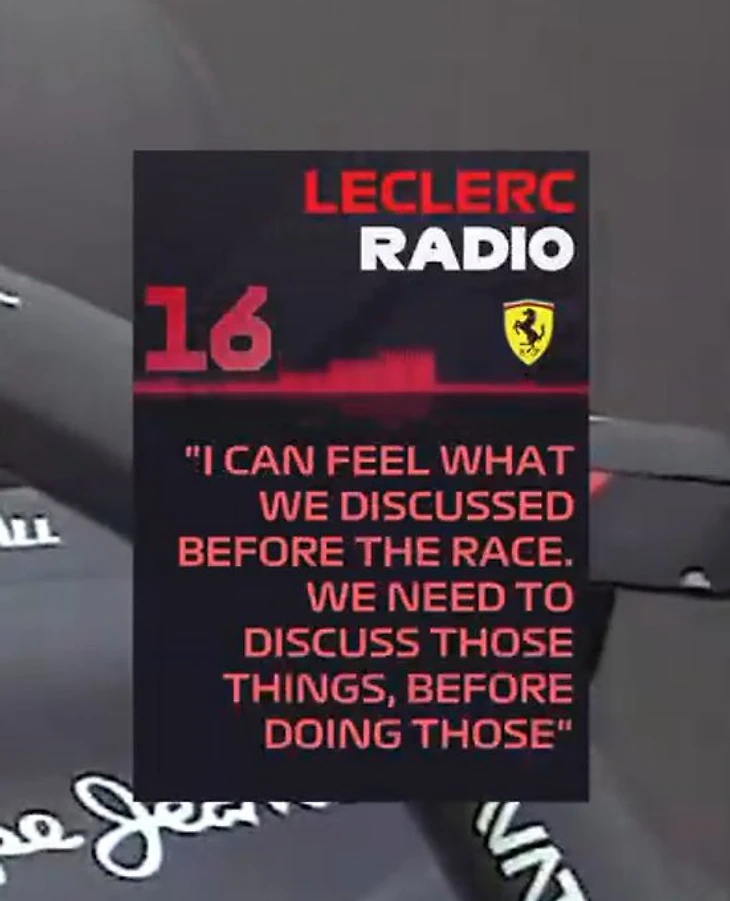 «Я чувствую, [проблема в том], что мы обсуждали перед гонкой. Такое нужно обсуждать, прежде чем делать», – ругался Леклер на команду.