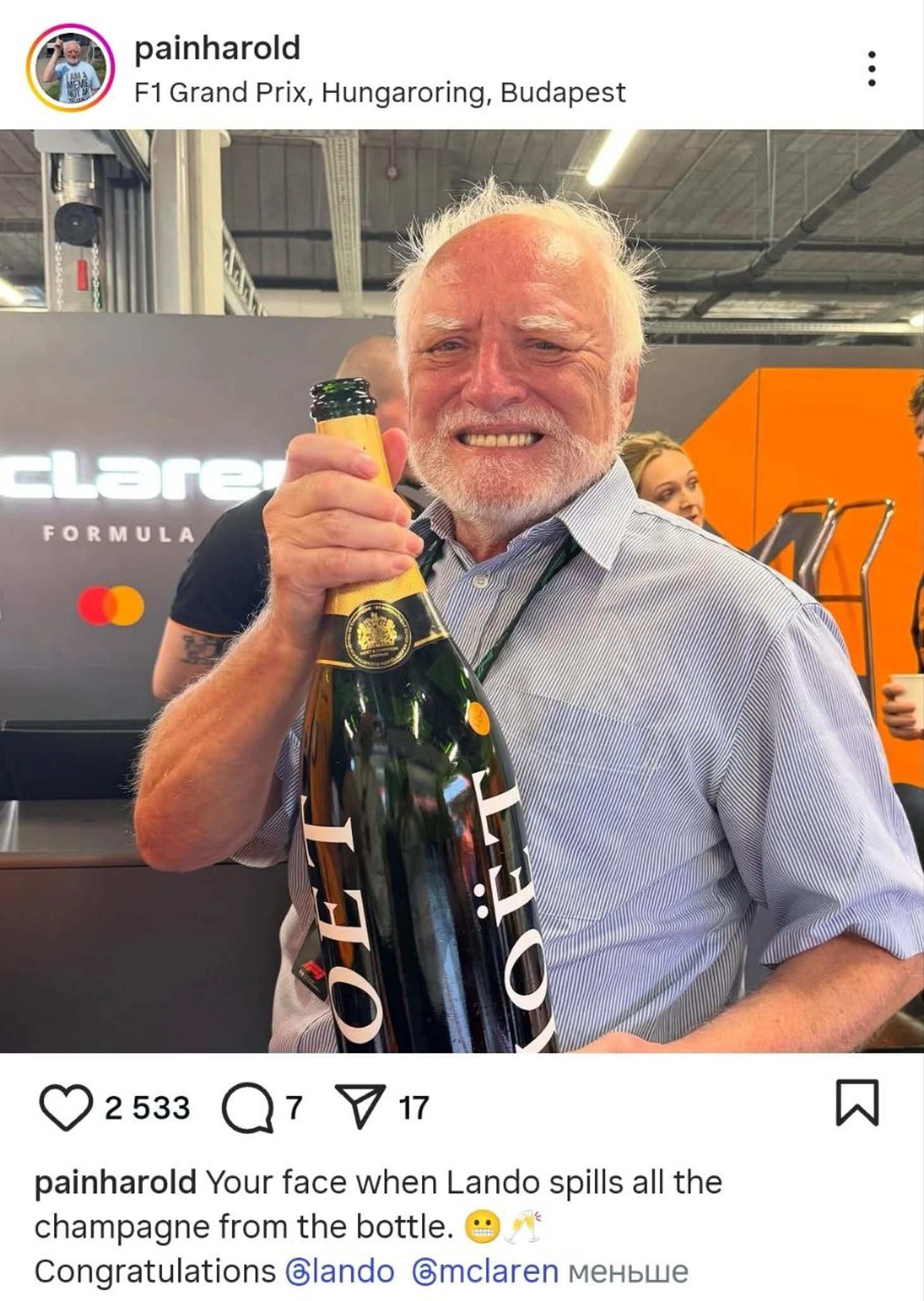 Гарольд, скрывающий боль, ворвался в «Ф-1» – создал несколько мемов и фото с пилотами