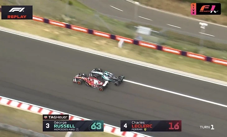 На второй попытке при блокировке был контакт (Рассел опять начал жаловаться — стюарды приняли к рассмотрению — 5 секунд Леклеру):