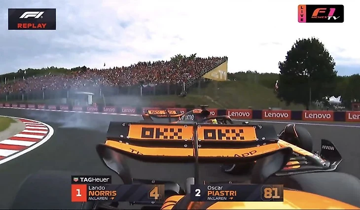 * Ландо отлично отразил атаку Оскара на предпоследнем круге: