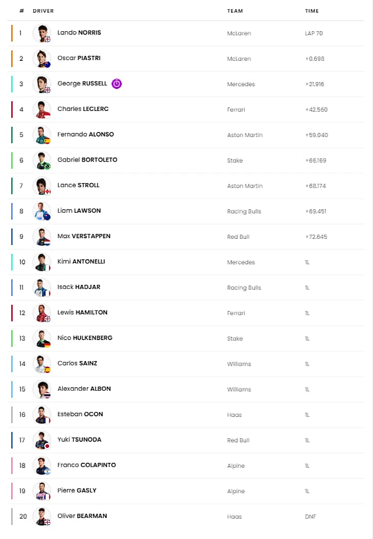 * Отличнейший пит-стоп Норриса — 1.9! Решили переобуться на хард, и ехать до конца на нем;