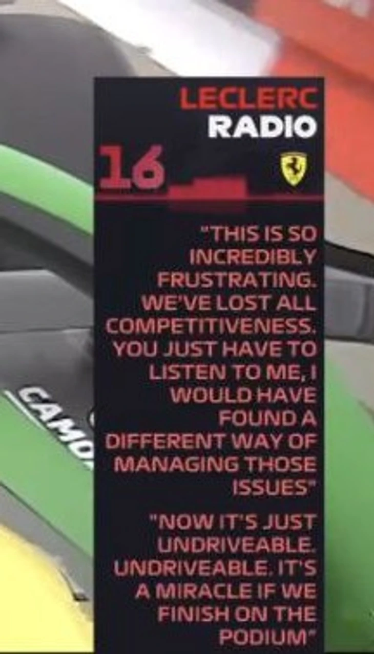 * Что-то опять пошло не так в тактике Феррари — Леклер жалуется по радио, что они проиграют гонку;