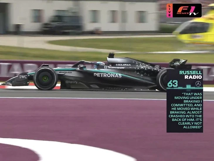 * Рассел пробовал обойти Леклера, но не удалось, поэтому он начал ныть в радио: