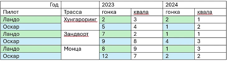На сегодняшний день разрыв между пилотами составляет 16 очков. Чтобы выйти вперед, Ландо нужно выиграть как минимум 3 гонки, при условии, что Оскар приедет вторым. Тогда разрыв в пользу Ландо станет 5 очков. Проблема кроется в том, что Ландо слишком поддается эмоциям и влиянию внешней среды, в то время как Оскар всегда с холодной головой.