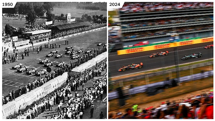 В сезоне 2025 года идет полным ходом борьба за титул между Ландо Норрисом и Оскаром Пиастри, и он станет последним перед введением нового регламента на двигатели и 100% экологичное топливо в 2026 году. Однако давайте оглянемся назад, на первый в истории сезон чемпионата мира и на легендарные трассы, и на то как они за это время изменились.