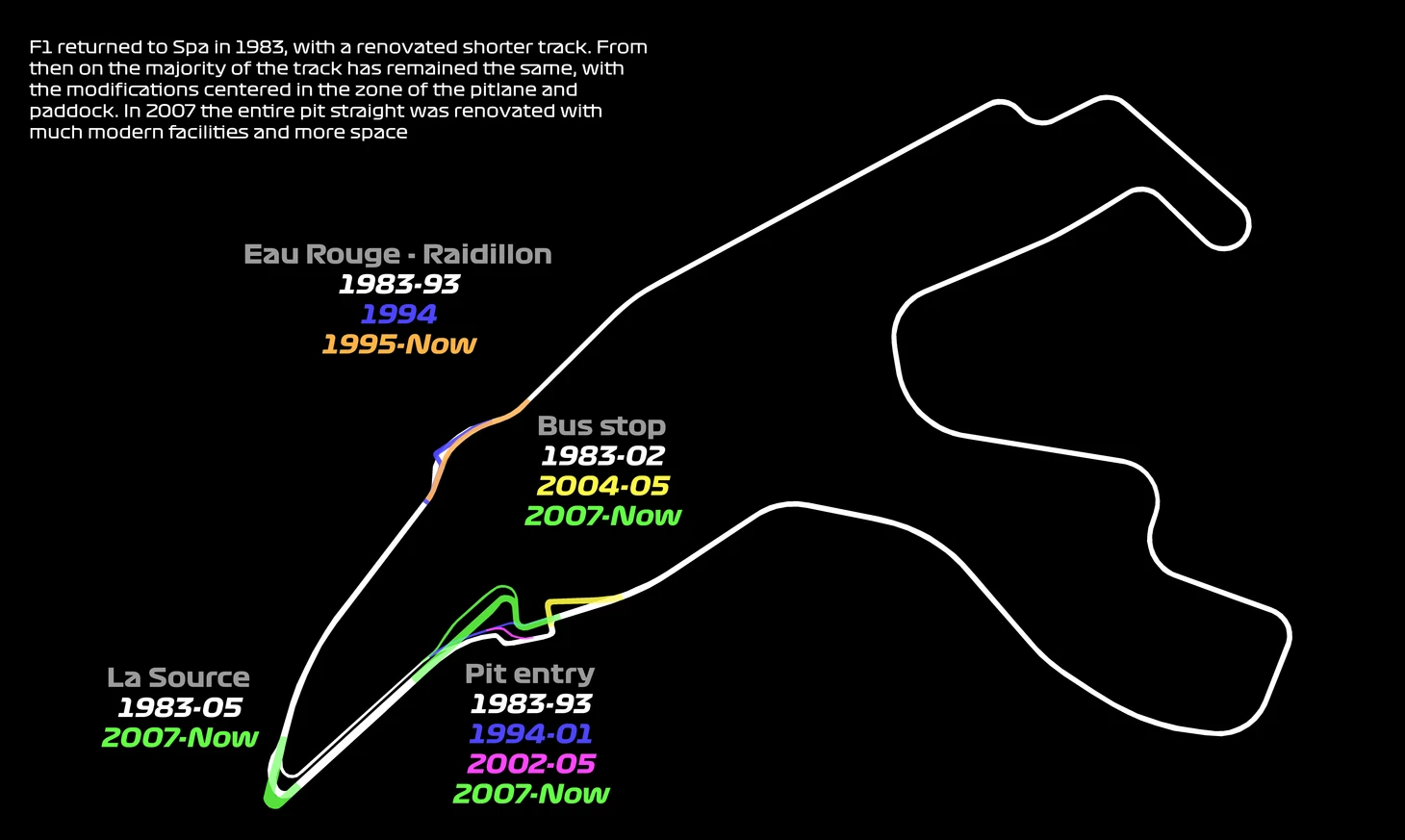 Местные власти предоставили необходимое финансирование для проекта реконструкции. Были перестроены боксы «Формулы-1», а также внесен ряд изменений в трассу, например, была переделана шикана «Автобусная остановка» (где раньше действительно останавливались автобусы, когда эта часть старой трассы еще была общественной дорогой) и была удлинена прямая до поворота «Ла Сурс» (первый поворот).