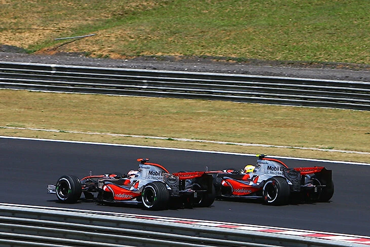 Вроде бы. Именно внутреннее противостояние Алонсо и Хэмилтона перетянуло на себя все внимание команды – точнее, поведение руководства в ответ на амбиции обоих гонщиков. Шеф Рон Деннис перешел к открытой поддержке британского вундеркинда, гараж раскололся надвое, началась «гражданская война» – и она привела к сливу внутренних данных о промышленном шпионаже за «Феррари» (хоть и без использования чертежей алых машин в своих решениях), исключению из Кубка конструкторов, штрафу на 100 млн и проигрышу титула в 1 балл.
