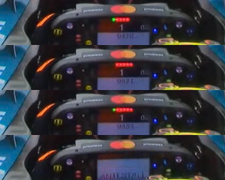 На руле Пиастри видно, как переключались индикаторы ограничителя оборотов двигателя – это могло ввести Оскара в заблуждение, из-за чего он и отпустил сцепление. Когда же пилот понял, что совершил фальстарт, то включил систему предотвращения остановки двигателя. И за это время потерял кучу позиций.