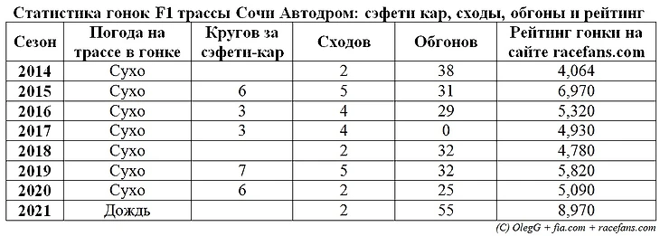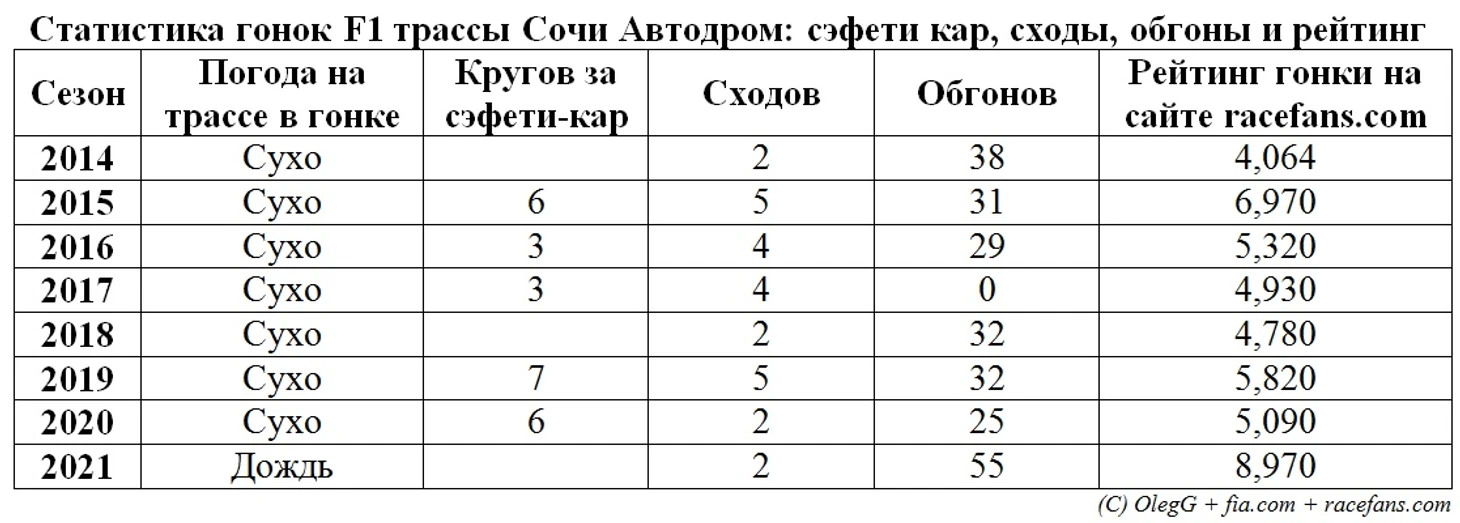 Добавлю немного расширенной статистики: круги за машиной безопасности, сходы, обгоны, рейтинги: