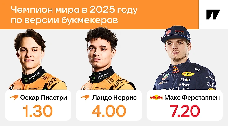 Пиастри, Норрис и Ферстаппен уместились в диапазоне кэфов 3.20-3.60. Даже на старте сезона, когда букмекеры сознательно оставляли зазор для плотной борьбы и неожиданных результатов, трех пилотов не сводили так близко.