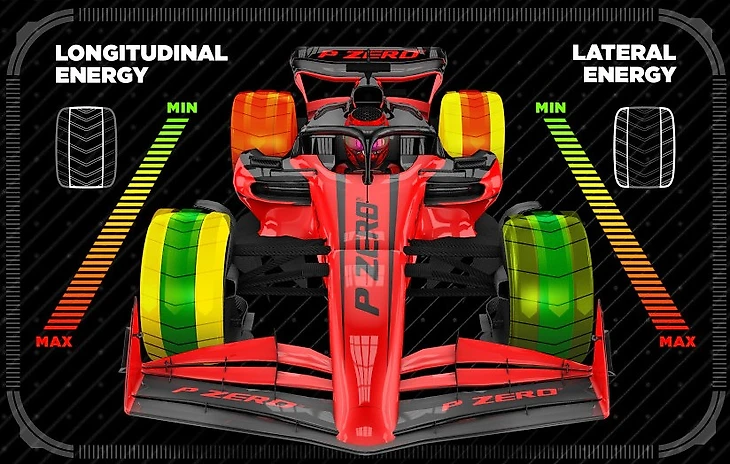 Нагрузка на торможениях и требования к прижимной силе – максимальные (5 из 5). Нагрузка на разгонах – чуть поменьше: 4 из 5. Продольные перегрузки вместе с «идеальным» износом шин в принципе меньше – 2 из 5 – но посмотрите, с каким дисбалансом на колеса они распространяются:
