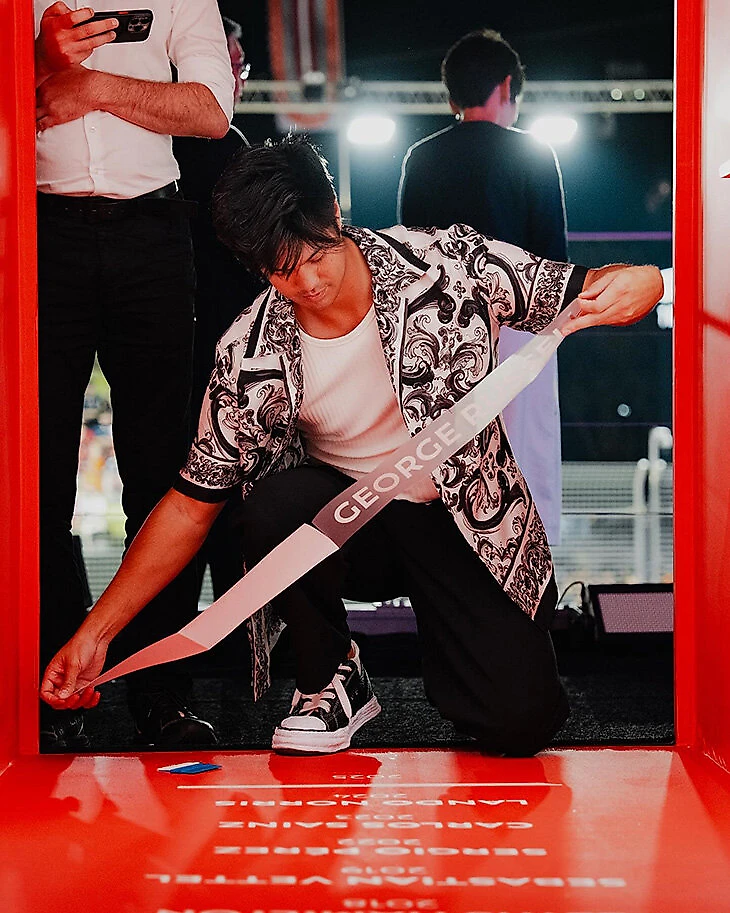 Да, местным модным звездам доверили не только роли приманок для VIP-гостей. Сингапурский актер Росс Батлер (супергерой из нового «Шазама») быстро вносил имя Джорджа Расселла на памятную красную аллею победителей.