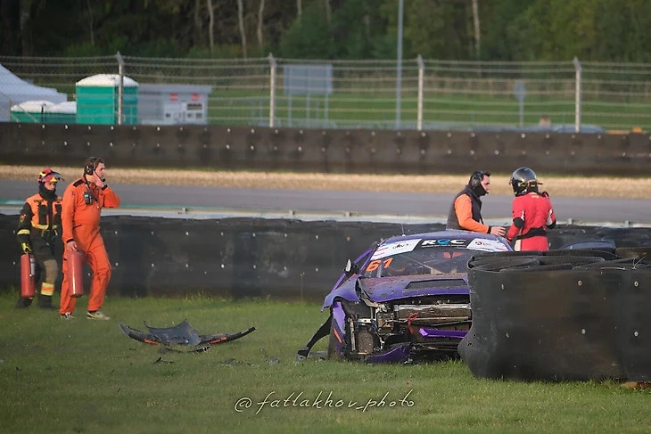 Судя по повреждениям с большой вероятностью суперкар VRC-Team пойдет под списание. Гонщик, к счастью, не пострадал.