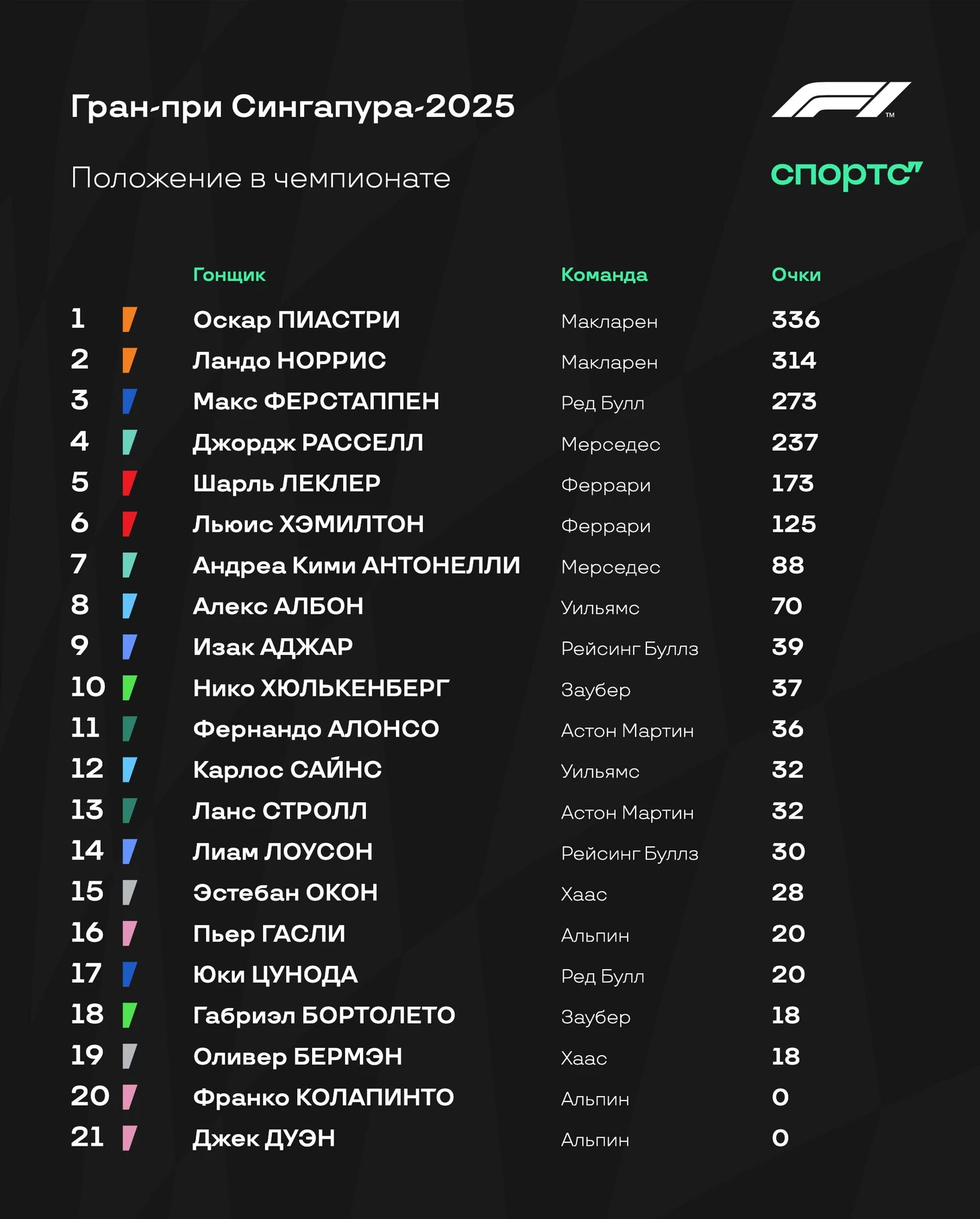 Да, сплошные победы выглядят фантастикой, но таблица не предполагает ни одной аварии, серьезной ошибки или механического схода у австралийца. А подарки от Пиастри, Норриса и «Макларена», вероятно, все же понадобятся.