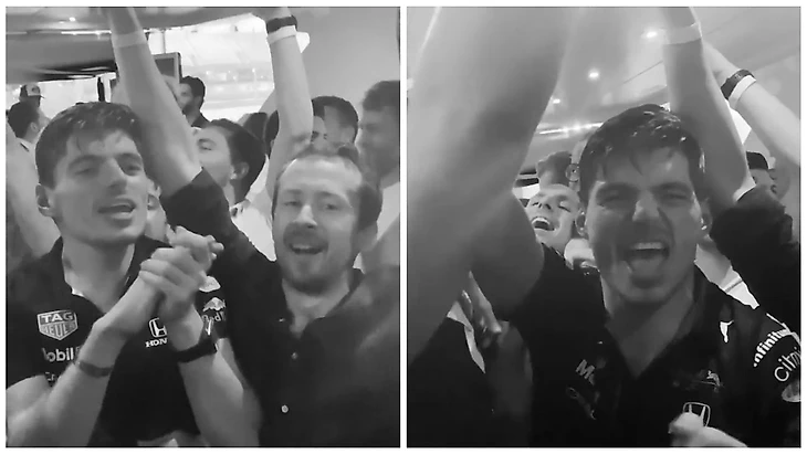 На ролике в соцсетях в кадр попал и Макс – как раз в моменте, где Антониу поит своих друзей-гонщиков текилой из горла.
