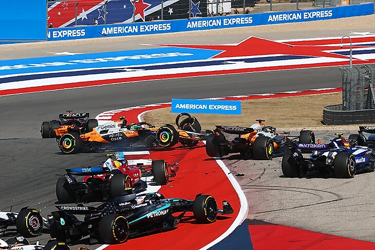 Крах «Макларена» на первом же гоночном круге в США: столкновение и двойной сход