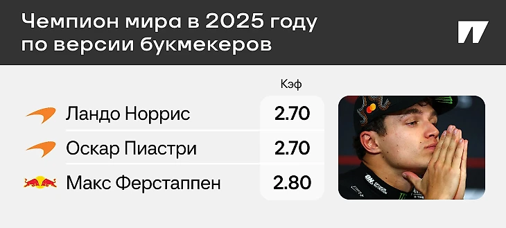Перед прошлой гонкой двух конкурентов ставили вплотную: 3.00 у Ферстаппена, 3.10 у Ландо Норриса, 3.40 у Оскара Пиастри. Сейчас тройка фаворитов та же, но в Макса верят еще больше, чем тогда.