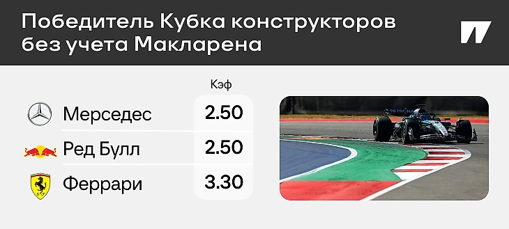 Шарль Леклер спускается все ниже: например, перед сингапурским этапом давали 6.70, перед американским – 15.00, а сейчас уже 17.00. У Джорджа Расселла показатель становится более привычными по сравнению с предыдущим 10.00.
