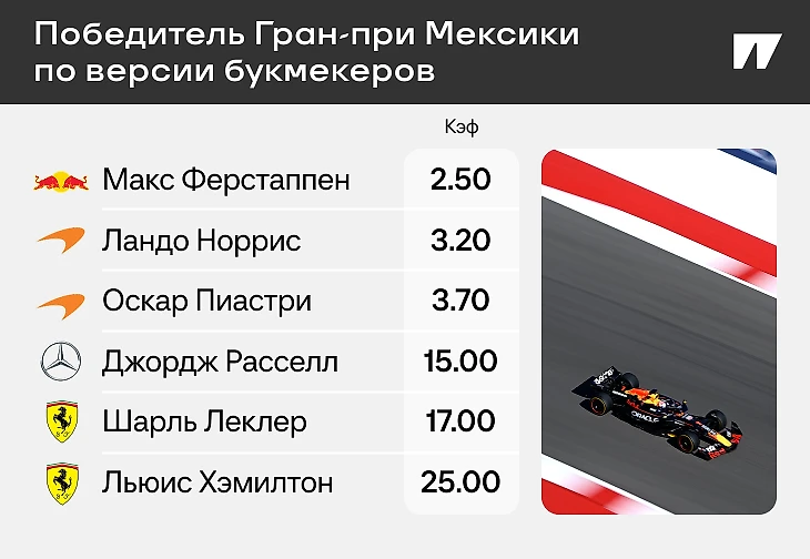 В последнее время от этого отвыкли, но теперь Ферстаппен – снова фаворит предстоящей гонки. Вот как было на нескольких предыдущих: в Италии и Азербайджане на его победу давали не более 20%, в Сингапуре было 28%, а в США – 33%. В Мексике теперь – 40%.