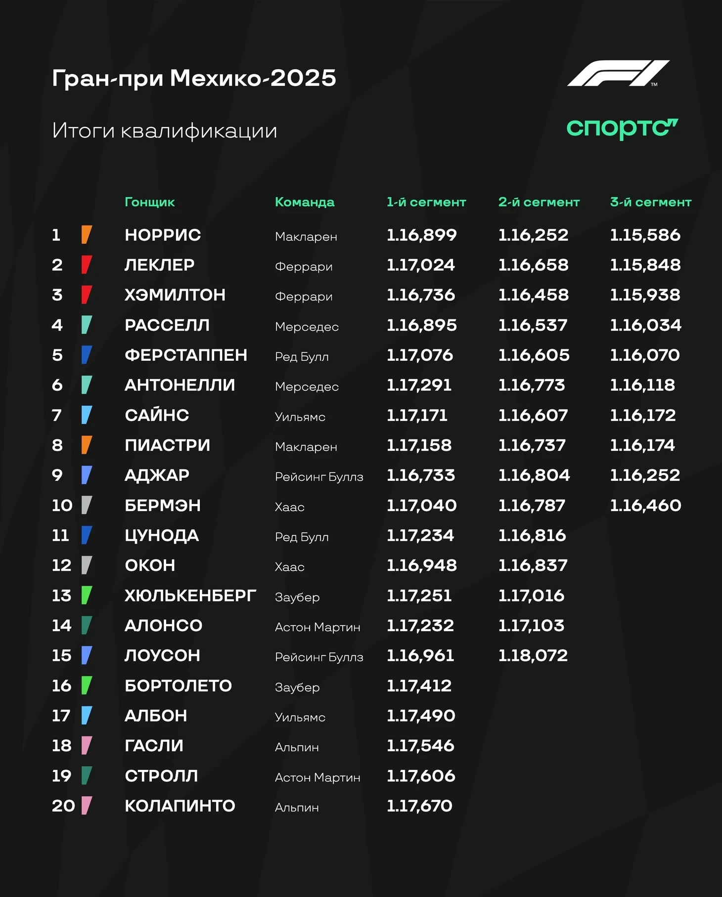 Поул Норриса – жемчужина квалы «Ф-1» в Мехико. «Феррари» следом, Пиастри провалился
