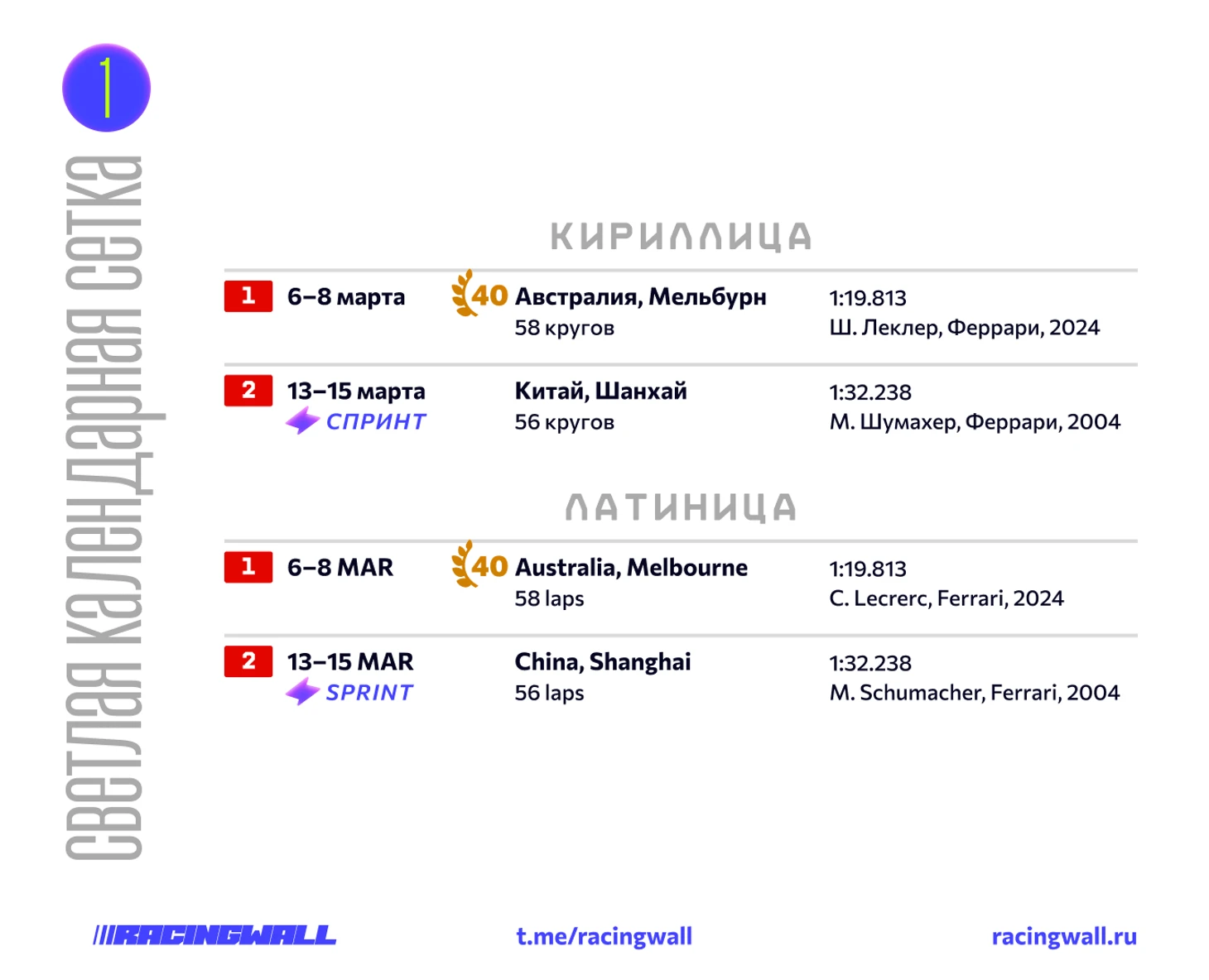 Читайте начало истории от идеи до календарной сетки в моём блоге «Создаю настенный календарь чемпионата Формулы-1 2026 вместе с фанатами». А сейчас время продолжать.
