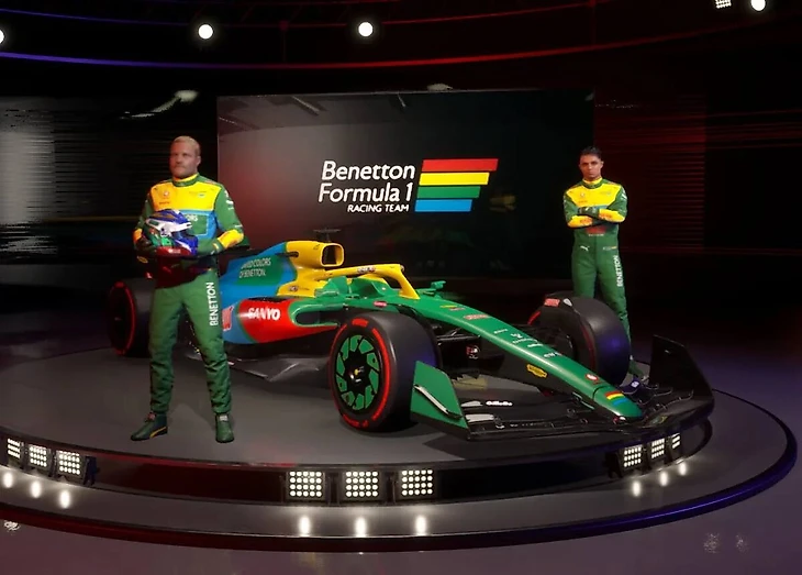 Benetton вошла в Формулу-1 в 1986 году, приобретя команду Toleman, которая к тому времени уже имела потенциал, но не обладала достаточными ресурсами для полноценной борьбы с лидерами. Вместе с новым владельцем команда изменила не только название, но и общий внешний образ. Машины Benetton сразу выделялись яркой визуальной манерой — насыщенными цветами, динамичными переходами и необычной для Формулы-1 лёгкостью презентации. Это было частью стратегии: команда не просто участвовала в гонках, она строила узнаваемый бренд.
