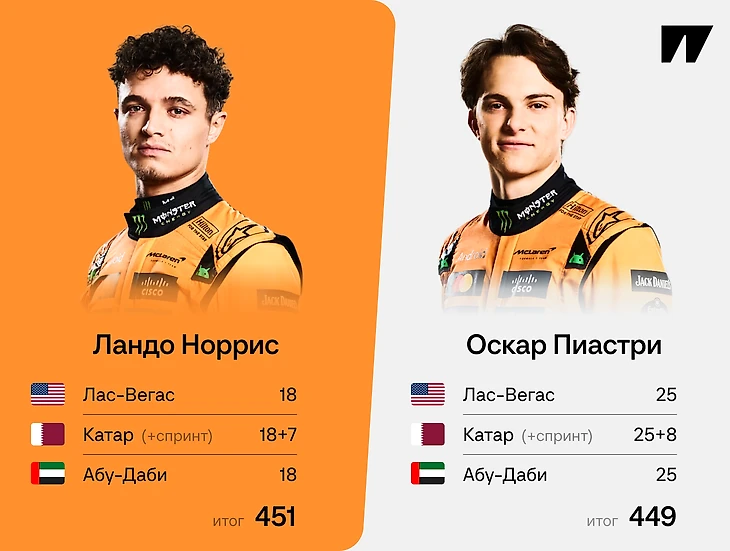 Норрис теперь точно чемпион «Ф-1»? Вот все сценарии шансов Ферстаппена и Пиастри