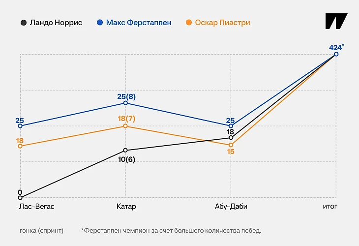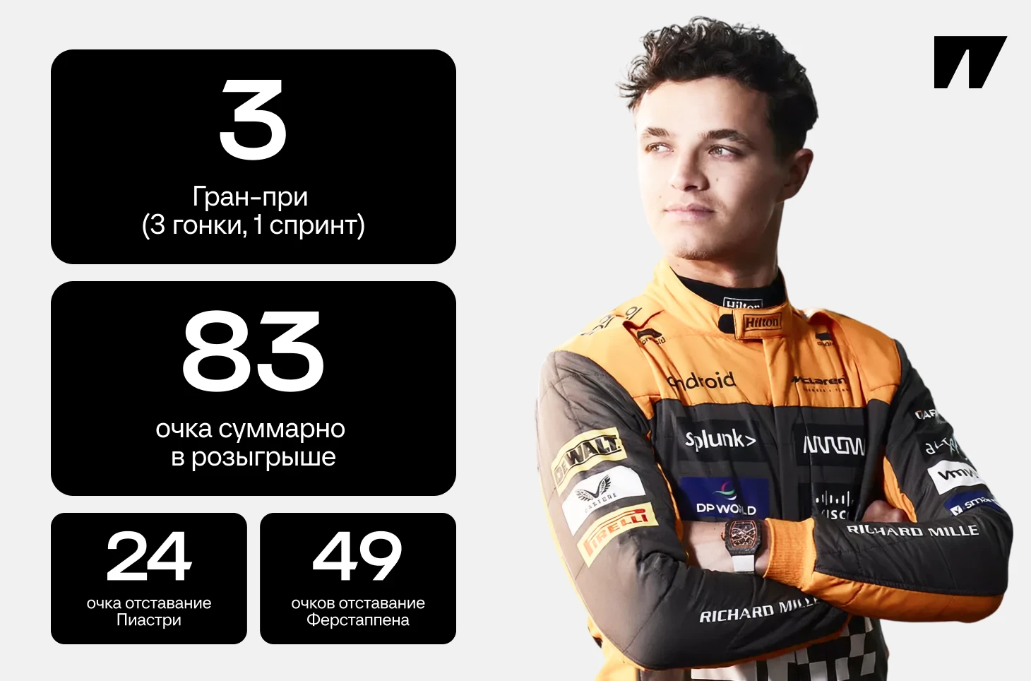 Самый простой способ для Норриса гарантированно выключить Макса до заключительного этапа – оформить два подиума в больших гонках и один в спринте. В таком случае Ферстаппену не помогут даже три победы.