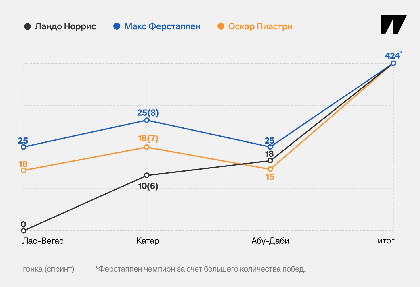 У такого насыщенного событиями сезона ожидался яркий финал с живой чемпионской интригой на заключительном этапе в Абу-Даби – теперь такой сценарий значительно менее вероятен, чем досрочное чемпионство Ландо Норриса в Катаре. Неужели по цифрам и правда все так грустно?