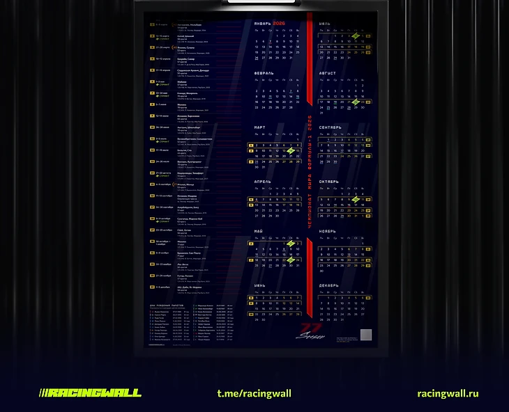 Настенный календарь Формулы-1. Финальный дизайн календаря