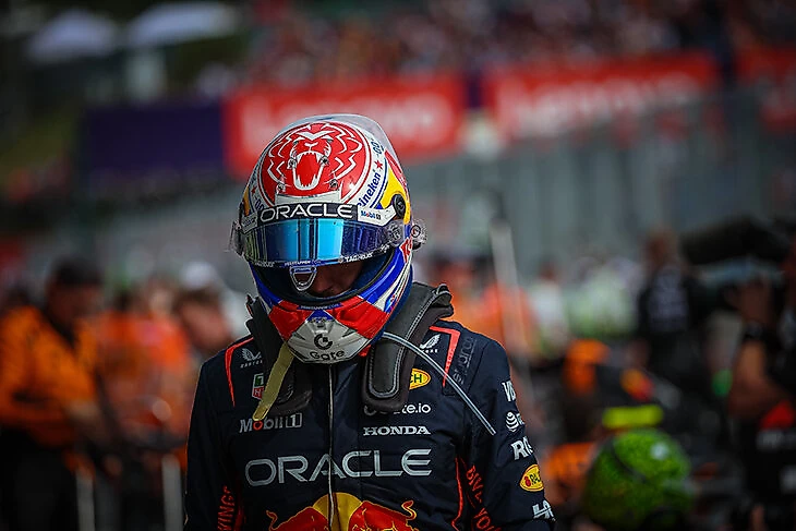 Похожая история без реальных шансов на победу – Гран-при Китая (слишком кочковатый трек, а спринт не дал возможности настроить болид как следует – 4-е место), этап в Бахрейне (перегрев и абразивный асфальт разрушали покрышки Ферстаппена с поразительной скоростью – 6-е место), падение с поула в Майами на 4-е по тем же причинам, драматичный разворот под британским дождем и падение с поула на 5-е, невозможность побороться за поул в Монако, жаркий кошмар картодрома Венгрии и 9-е место…