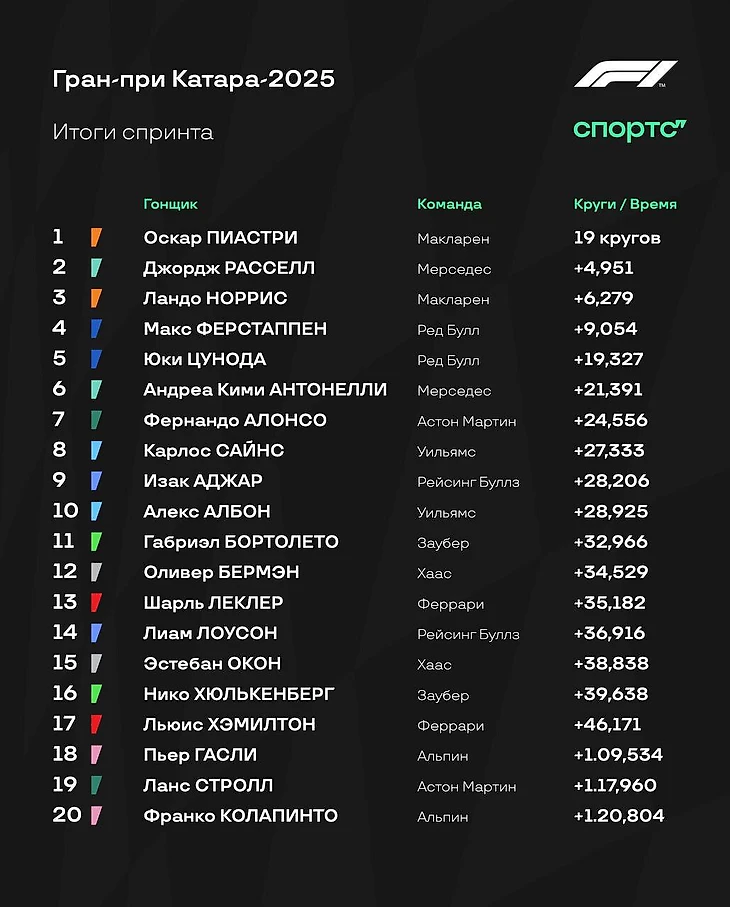 Пиастри забрал уверенную победу в спринте. Ферстаппен столкнулся с проблемами