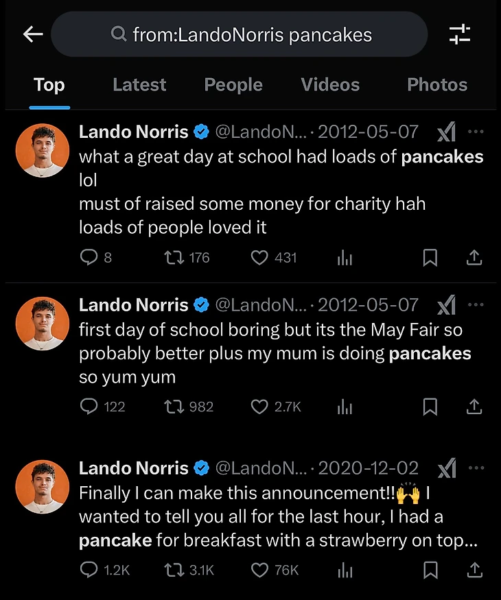 Причем тема блинчиков Ландо Норриса жива до сих пор. За последние пару лет она возникала минимум три раза.