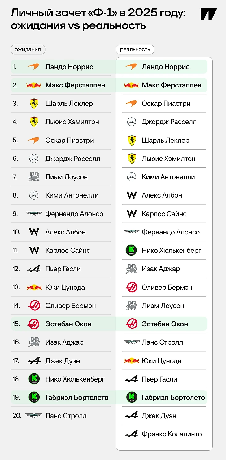 Сезон-2025 уже можно заносить в список самых хаотичных в истории «Формулы-1» – хотя казалось бы, «Макларен» вошел в него доминатором, досрочно выиграл Кубок конструкторов и в итоге довел дело и личного титула. Хоть и не без нервов. Но теперь, когда чемпиону вручают трофей в Ташкенте, фанаты Норриса празднуют, а эмоции сторонних болельщиков улеглись, давайте посмотрим – всю эту карусель можно было предсказать? Насколько реальность расходится с тем, чего ждали перед началом чемпионата?