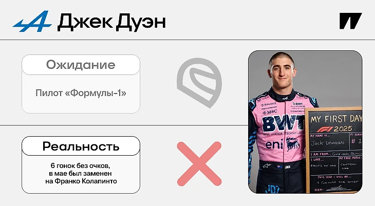 Франко Колапинто появился в «Ф-1» только по ходу сезона (в мае заменил Джека Дуэна в составе «Альпин»), поэтому в предстартовых раскладах его и не было. Некритично – он так и не набрал ни одного очка.
