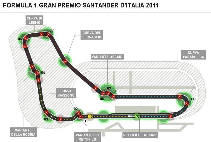 Автодром Монцы является одним из самых известных гоночных треков в мире. Он славится своими высокими скоростями прямых и сложностью поворотов - «Курво Гранде», «Роджиа», «Лесмо», и «Серраглио». Гонщики находятся на полной скорости на большей части круга. А Легендарным участком трассы является тяжелейший поворот «Параболика».