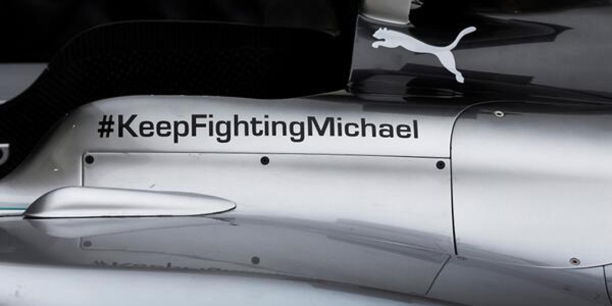 Со времени первых предсезонных тестов в Хересе и до сих пор команда «Мерседес», за которую немец выступал до 2013 года, размещает на своих болидах надпись «Keep Fighting Michael».