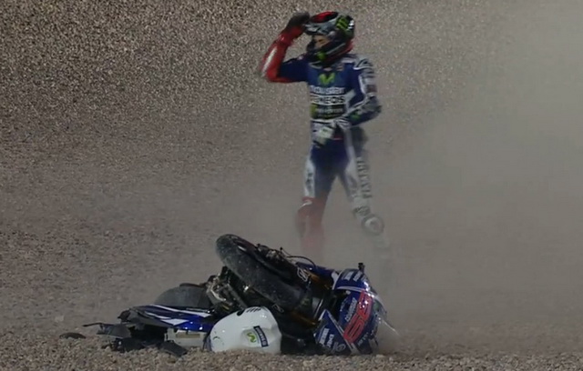 Но спустя несколько поворотов Хорхе упал, сильно разбив свой мотоцикл: