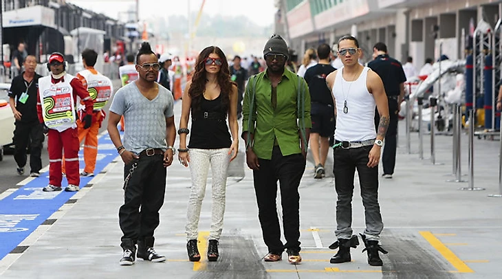 Ферги и ребята из «Блэк Айд Пис» на Гран-при Сингапура 2009 года.