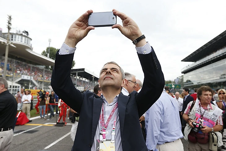 Гран-при Италии 2013 года. Роуэн Аткинсон не раз замечался в боксах «Макларена» и «Мерседеса». Похоже, «Мистер Бин» болеет за соотечественников, особенно за Льюиса Хэмилтона.
