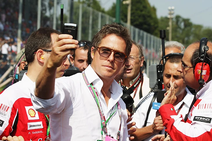 Гран-при Италии-2010. Большой фанат автогонок Хью Грант в окружении представителей «Феррари».