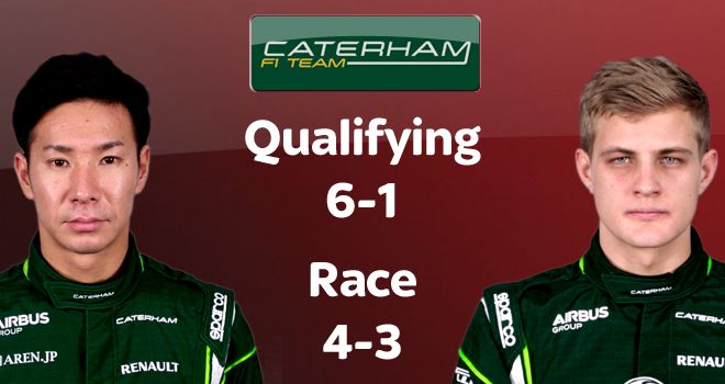 Думаю, здесь все предсказуемо. Кобаяши, благодаря своему опыту, громит Эрикссона в квалификациях, а в гонках слабее только в случае собственных проблем. Тем не менее, самолюбие Камуи очень уязвлено тем фактом, что он дал себя обогнать гонщику из стана главных конкурентов в самый важный момент: если бы Кобаяши удержал за собой Жюля, кто знает, возможно, именно "Катэрхэм" заработал бы те самые жизненно важные очки. Но история не знает сослагательного наклонения, и теперь малайской команде остается уповать на огромное количество сходов в Бельгии или Бразилии.